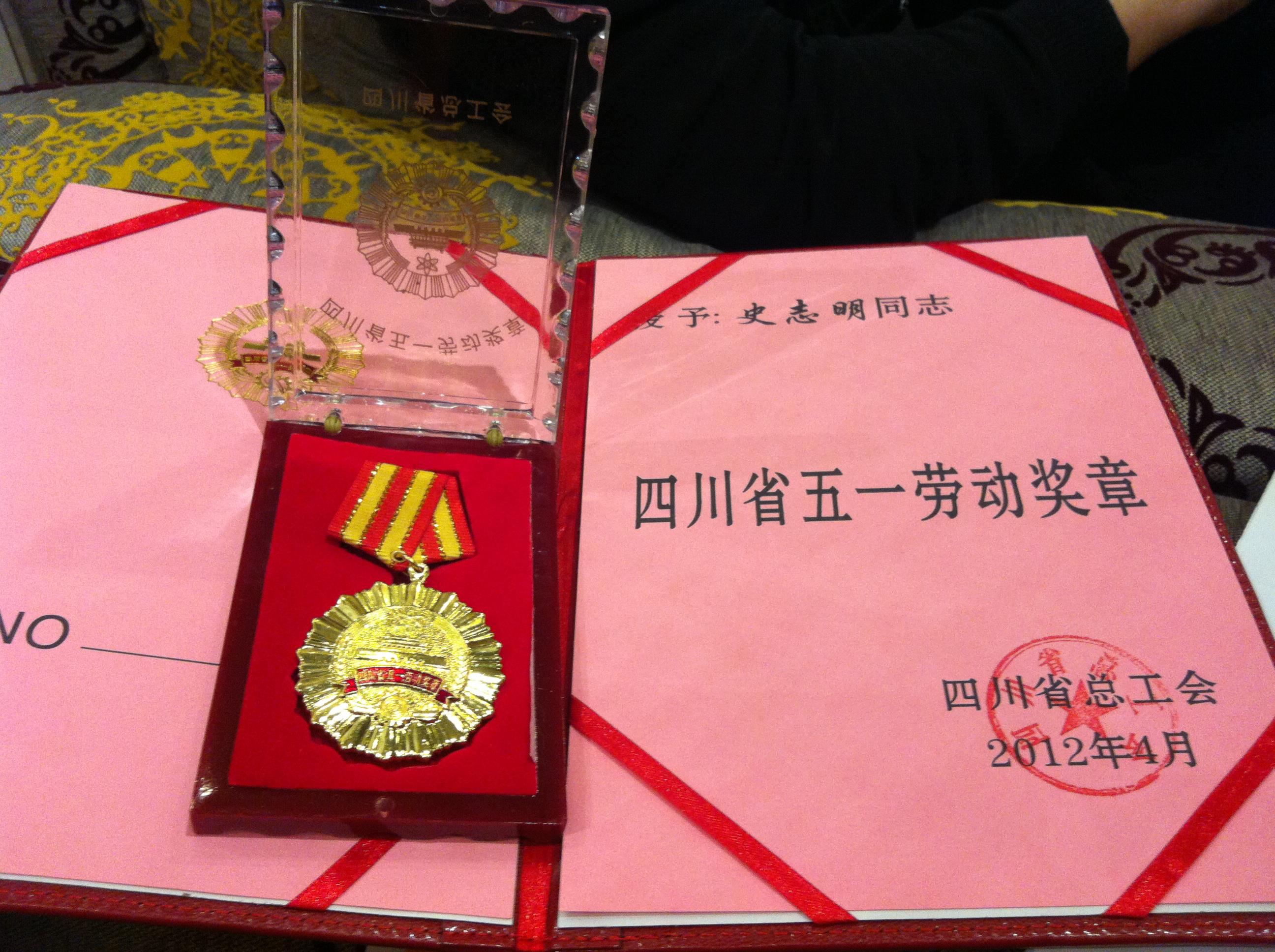 2012年,史志明同志榮獲四川省總工會頒發(fā)的“四川省五一勞動獎章”。