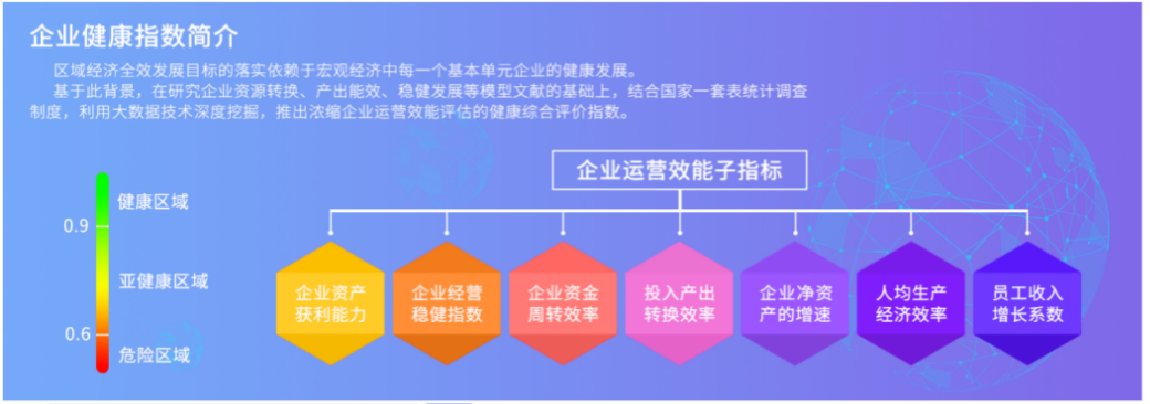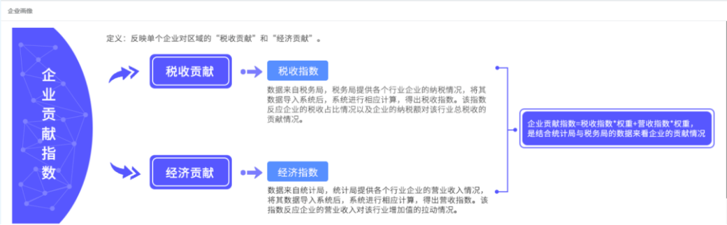 基于企業(yè)基礎(chǔ)指標(biāo)數(shù)據(jù),利用大數(shù)據(jù)技術(shù)深度挖掘,建立企業(yè)健康指數(shù)監(jiān)測(cè)模型和企業(yè)貢獻(xiàn)指數(shù)監(jiān)測(cè)模型,輔助經(jīng)濟(jì)主管部門及領(lǐng)導(dǎo),更加客觀、準(zhǔn)確地判斷每個(gè)企業(yè)的健康發(fā)展與貢獻(xiàn)情況,從而科學(xué)預(yù)判企業(yè)的成長(zhǎng)潛力,提高監(jiān)管精準(zhǔn)性和政府領(lǐng)導(dǎo)決策能力。