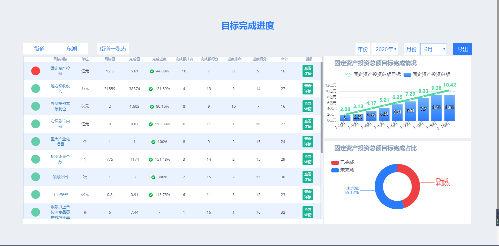 結(jié)合政府工作目標(biāo),分解重點(diǎn)監(jiān)測(cè)指標(biāo),并運(yùn)用多種指標(biāo)展示方法,從考核指標(biāo),重點(diǎn)經(jīng)濟(jì)指標(biāo)等方面直觀呈現(xiàn)當(dāng)前報(bào)告期內(nèi)經(jīng)濟(jì)運(yùn)行指標(biāo)達(dá)標(biāo)情況,并對(duì)未達(dá)預(yù)期指標(biāo)任務(wù)自動(dòng)進(jìn)行督辦信息推送,以便黨委政府及時(shí)進(jìn)行經(jīng)濟(jì)決策及工作部署。