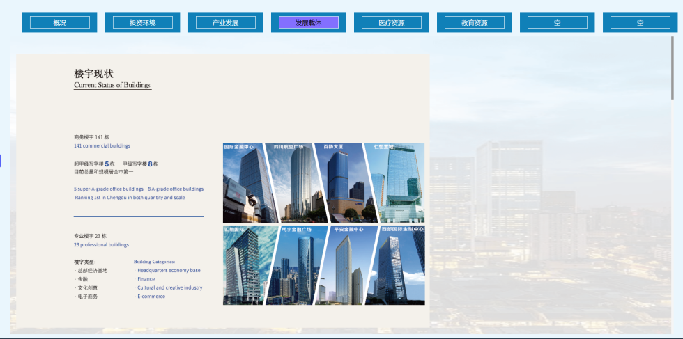 通過(guò)圖表結(jié)合的方式展示區(qū)域內(nèi)整體招商情況,規(guī)劃設(shè)計(jì)、招商環(huán)境等信息,整合樓宇載體、土地資源、招商政策、招商動(dòng)態(tài)等信息,并與移動(dòng)端數(shù)據(jù)保持同步更新,提高招商便捷性的同時(shí)為部門或街道招商引資提供數(shù)據(jù)支撐,提高招商能力和水平,降低招商成本,促使地方經(jīng)濟(jì)健康、快速發(fā)展。