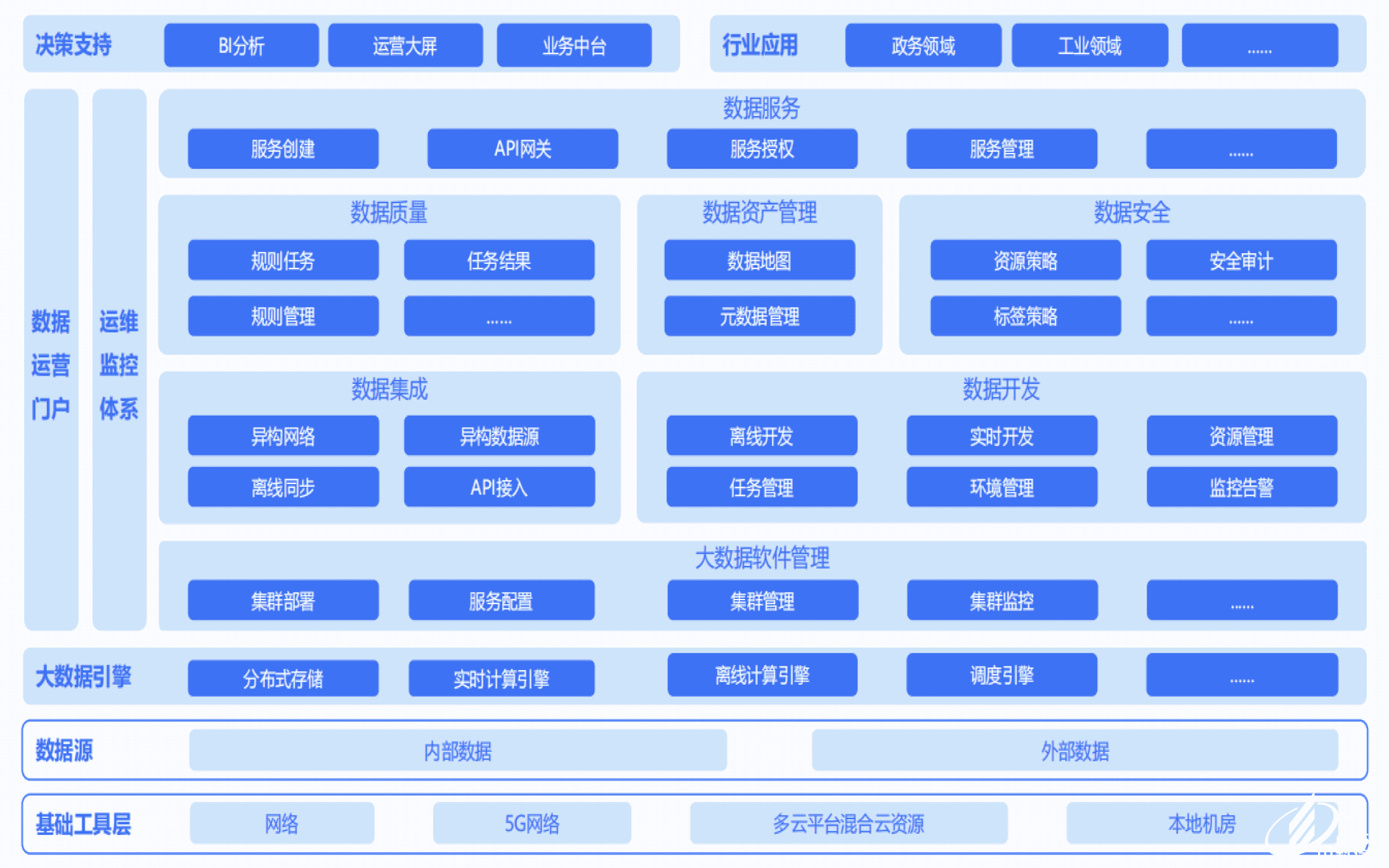極云數(shù)據(jù)中臺將大數(shù)據(jù)應用開發(fā)作為基礎設施,將海量數(shù)據(jù)進行采集、 計算、存儲、加工,同時建立統(tǒng)一標準和口徑。通過數(shù)據(jù)治理形成數(shù)據(jù)資產(chǎn),進而向 上支撐應用,提供高效的服務。同時減少數(shù)據(jù)重復建設、又降低煙囪式協(xié)作的成本, 為企業(yè)的業(yè)務創(chuàng)新持續(xù)賦能
