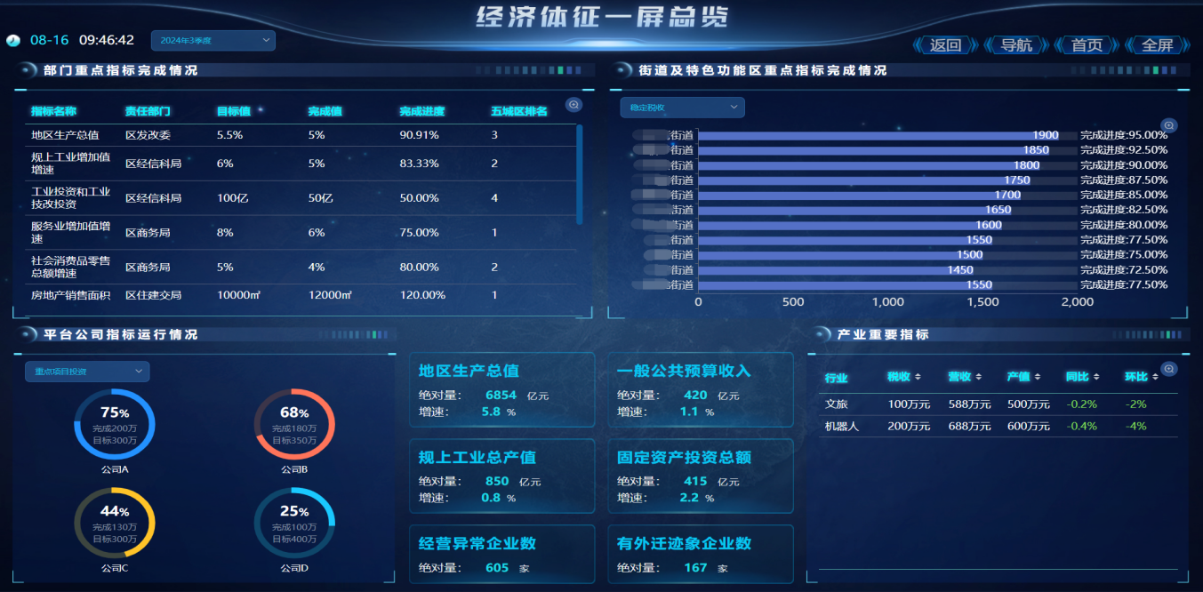 強化目標導向,對海量宏觀經(jīng)濟數(shù)據(jù)進行整合,通過模塊化、可視化、智能化的手段,構建起宏觀經(jīng)濟監(jiān)測、分析的指標體系,全面分析地方經(jīng)濟發(fā)展情況。