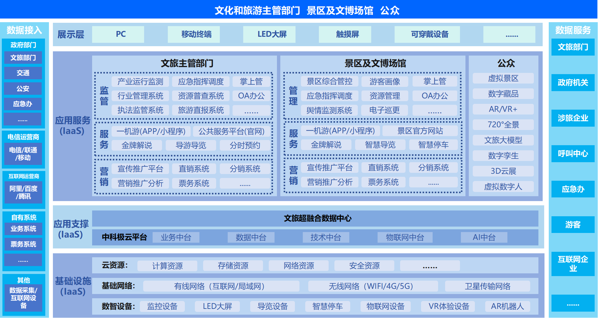 為解決文旅數據融合難、業(yè)態(tài)多監(jiān)管難、資訊發(fā)布渠道雜亂、游客體驗差等問題,中科信息以Al、大數據、物聯網等基礎產品為支撐,以應用場景為抓手,聚焦文旅融合創(chuàng)新,為政府、景區(qū)、文博場所等提供全流程服務和管理的解決方案,覆蓋基礎設施建設、文旅大數據、智慧服務、智慧管理、智慧運營等應用場景,實現管理智能化、服務一機化、營銷深入化,從而促進文旅融合發(fā)展,全面支撐文旅監(jiān)管決策,提高旅游公共服務質量。